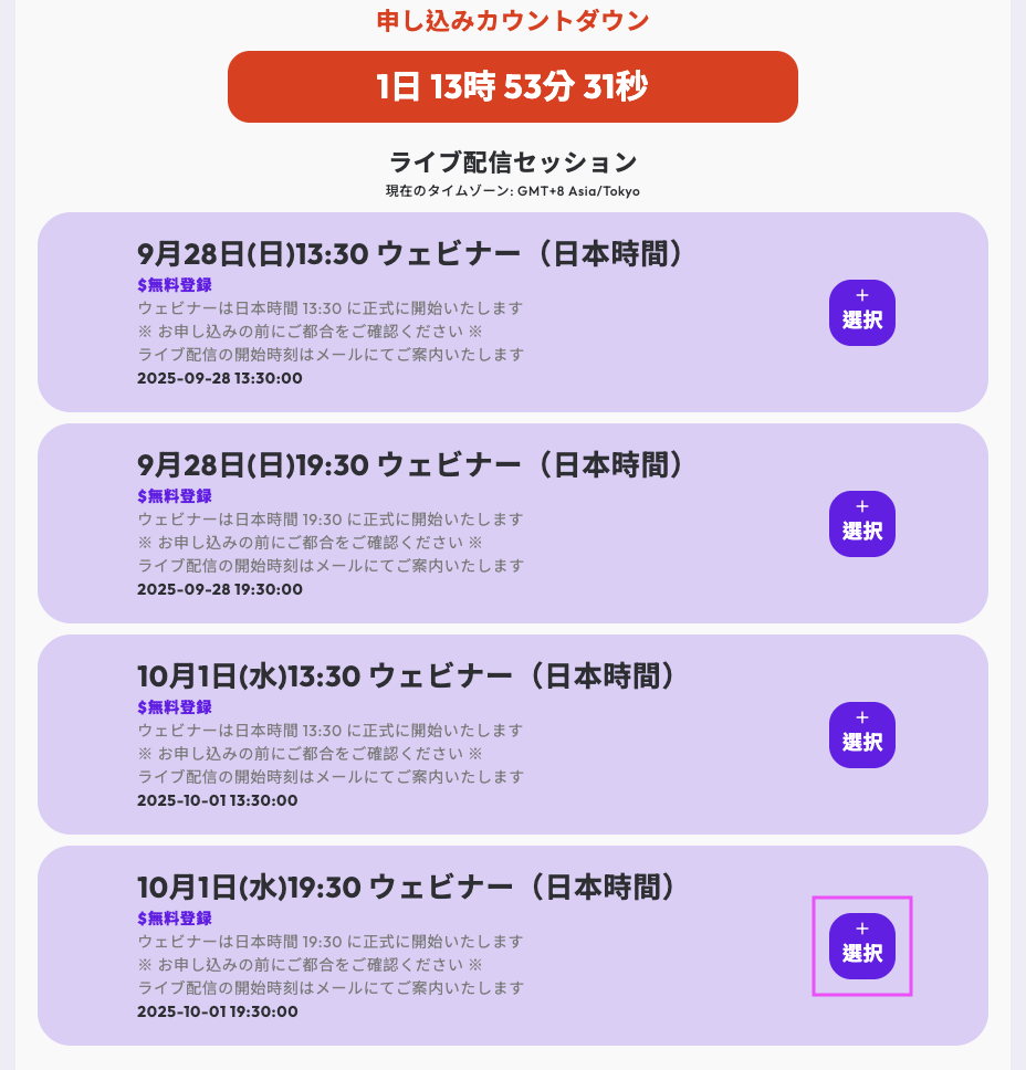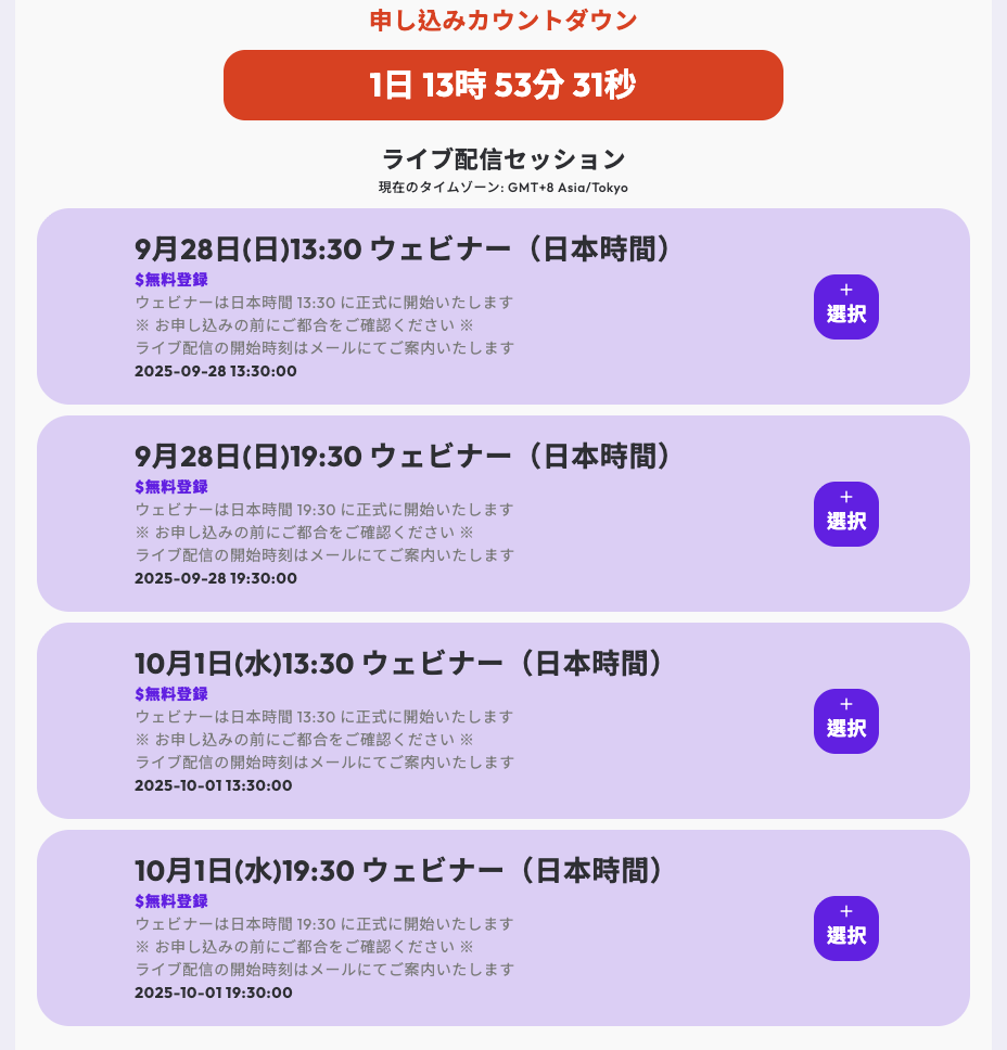 ※各回30名限定。日本の祝日や運営スケジュールにより変更される場合があります。