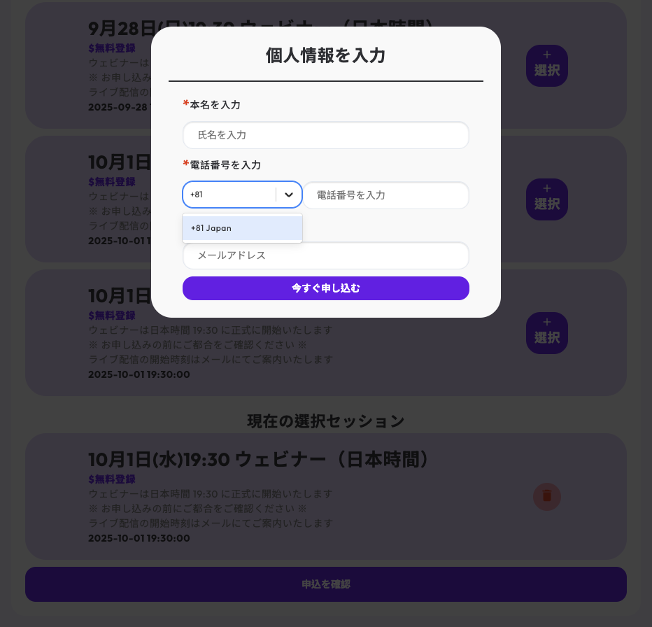 ※日本の電話番号を使用してSMSを受信する場合は、国番号として±81を選択してください