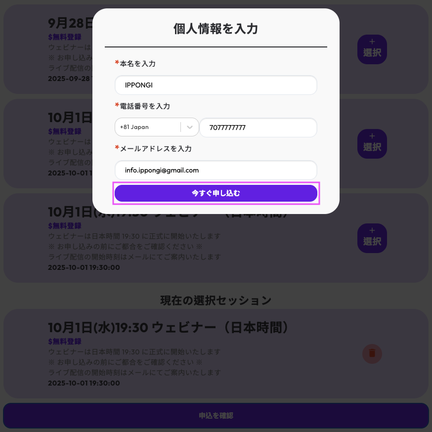 連絡先情報を入力した後に「今すぐ申し込む」をクリックしてください。