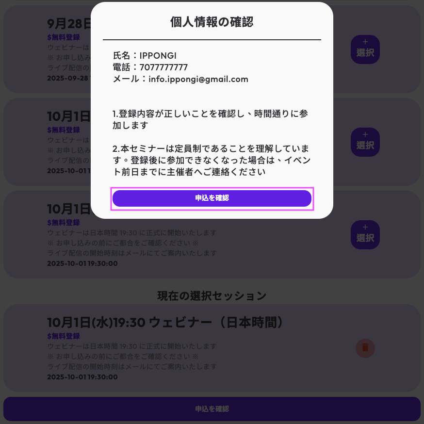 ステップ5. 自動確認後、再度青いボタンを押すと接続完了