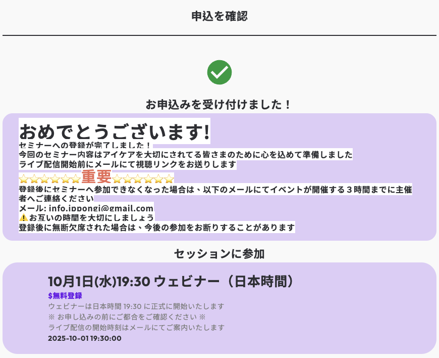 アイケアウェビナーにお申込みいただき、ありがとうございます! 当日は「アイケアを守るための3つの秘密」をお伝えしますので、どうぞお楽しみに。