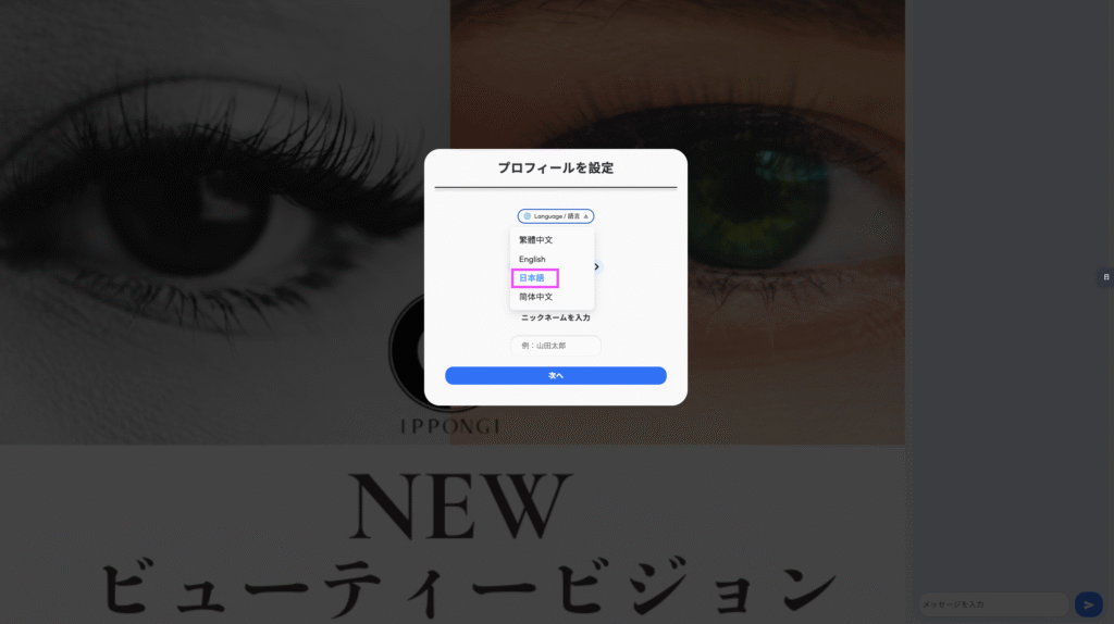 ステップ1. プロフィール設定画面を日本語で表示するには、