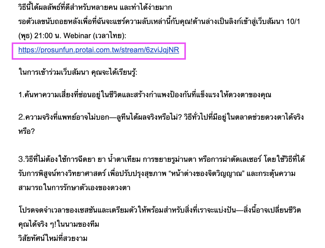 เลื่อนลงในอีเมล คุณจะพบลิงก์เข้าเว็บสัมนา