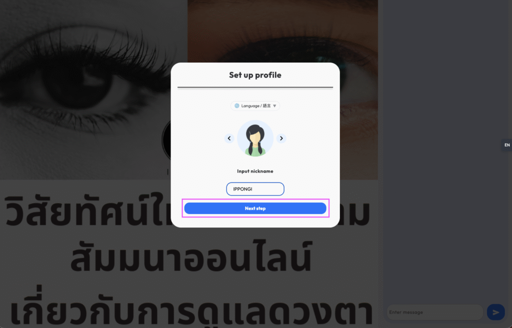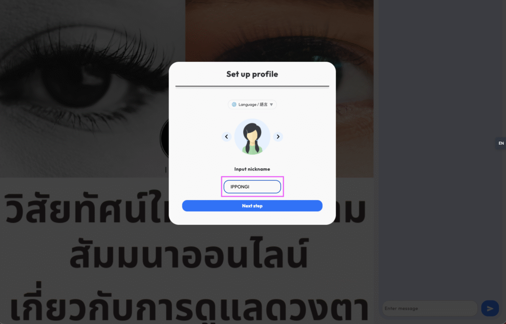 พิมพ์ชื่อที่คุณต้องการให้แสดงในระหว่างเว็บสัมนา