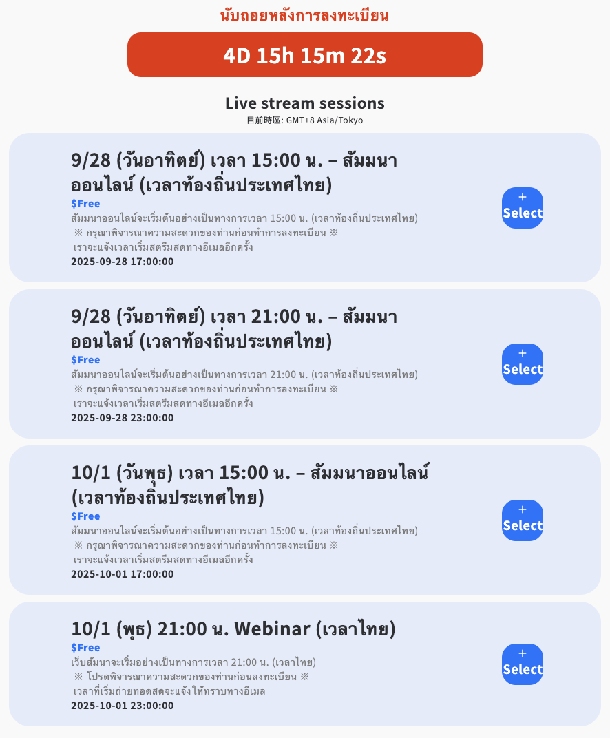 ใช้ลิงก์นี้เพื่อเข้าร่วมเว็บสัมนาตามเวลาที่คุณเลือก